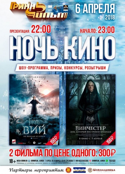 Расписание сеансов в кинотеатре «ГРИННФИЛЬМ».