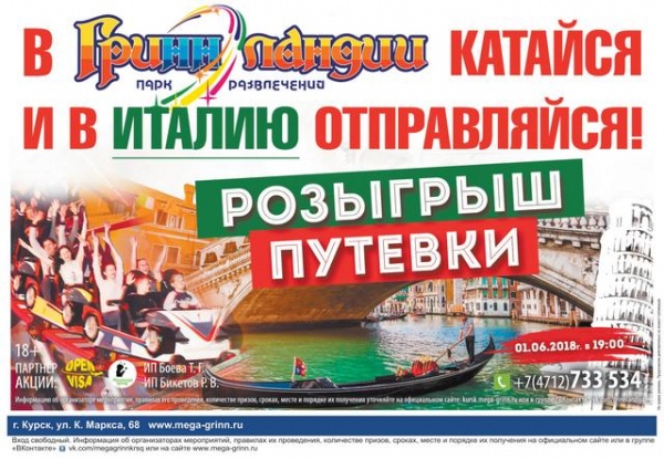 ВНИМАНИЕ! АКЦИЯ! В «ГРИННЛАНДИИ» КАТАЙСЯ И В ИТАЛИЮ ОТПРАВЛЯЙСЯ! РОЗЫГРЫШ ПУТЕВКИ!