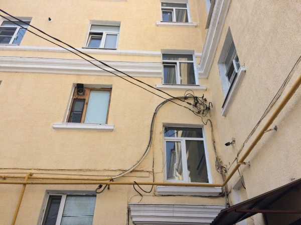 В одном из домов электропроводка выведена прямо на фасад здания. «Безобразие», — возмутился чиновник.