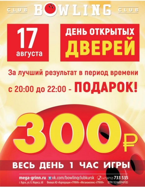 Единственный и самый большой в Курской области! Боулинг на 27 дорожек!