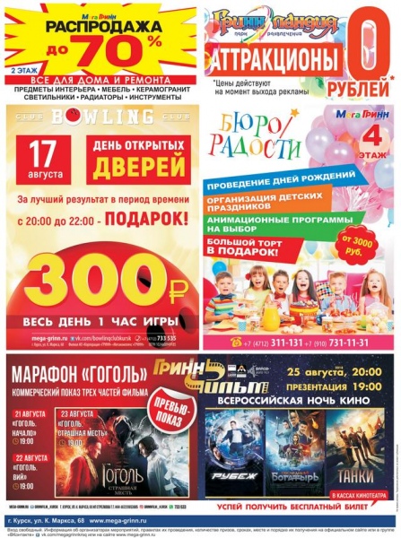 Курск. «МегаГРИНН» приглашает ярко и с пользой провести БУДНИ и ВЫХОДНЫЕ!