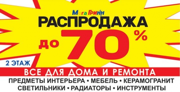 РАСПРОДАЖА ДО 70%! Всё для дома и ремонта! На 2-м этаже «МегаГРИННа»