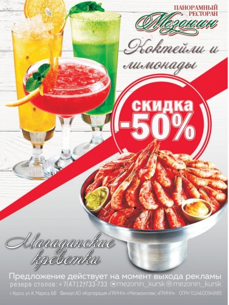 Скидки 50% на магаданские креветки, коктейли и лимонады