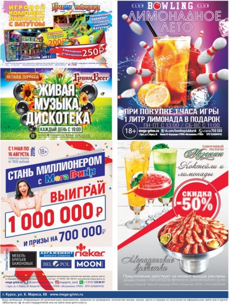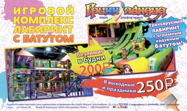 Многофункциональный комплекс «МегаГРИНН» — Город Восторга — приглашает жителей и гостей Курской области ярко и с пользой провести БУДНИ и ВЫХОДНЫЕ! Специальная акция «СТАНЬ МИЛЛИОНЕРОМ с «МегаГРИННом»! (18+).