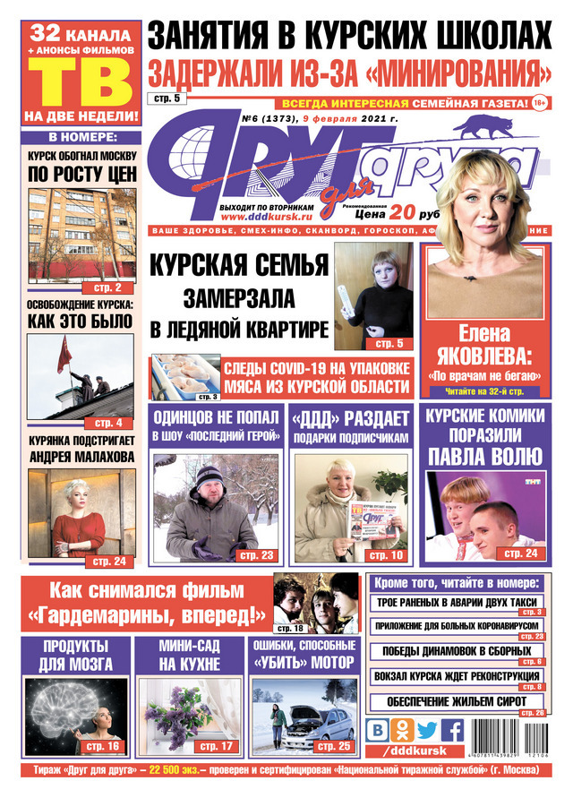 Во вторник, 9 февраля, вышел в свет свежий номер всегда интересной семейной газеты «Друг для друга» — одного из самых популярных и читаемых печатных изданий Курской области. Из него вы можете узнать следующее.