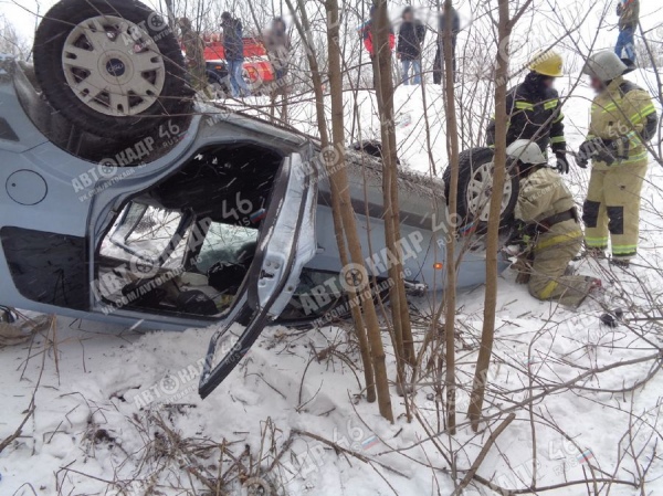 Под Курском машина улетела в кювет и перевернулась