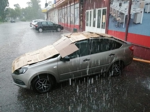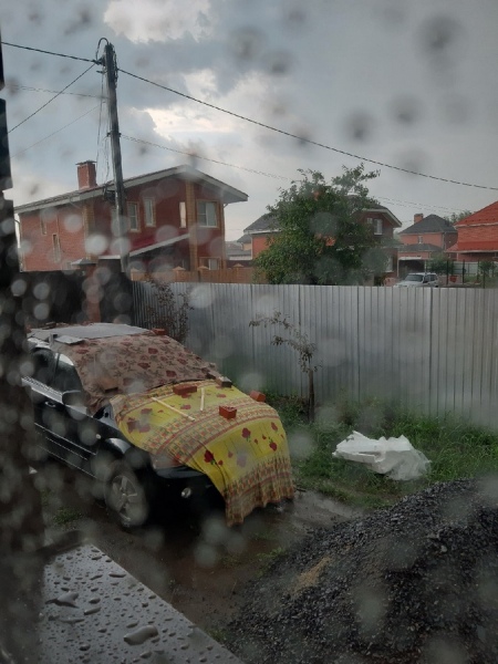 Жители Курска спасали машины от града коврами и одеялами