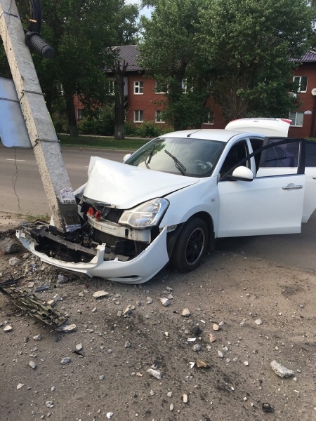 Вчера во второй половине дня на улице Республиканской в Курске автомобиль «Ниссан Альмеро» врезался в бетонную опору ЛЭП.
