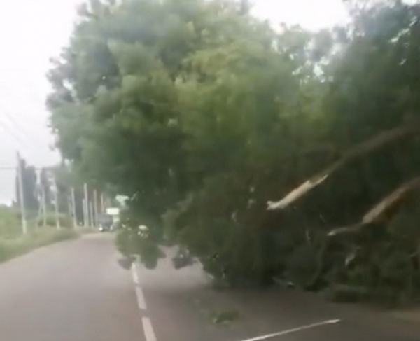 Об огромном дереве, упавшем на проезжую часть, сообщили очевидцы в паблике «Автокадр_46».