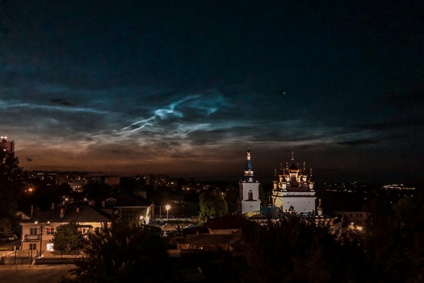 Вечером 28 июня в небе над Курском после заката были видны серебристые облака. Это сравнительно редкое природное явление.