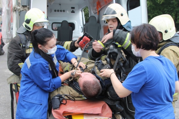 - С помощью направляющих тросов и рукавных линий мы ориентировали друг друга при движении, — рассказывает начальник первой специализированной пожарно-спасательной части по тушению крупных пожаров Александр Вялых. — Также поступали вводные о выходе из строя личного состава: отравление угарным газом, потеря сознания. Членам звена предстояла эвакуация пострадавших газодымозащитников, отработка навыков оказания медицинской помощи.