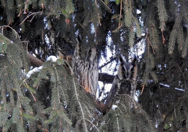 - Раз, два, три,четыре, пять... вышли совы погулять. Считаем сов, сколько их сидит на одном дереве? Впервые вижу такое количество ушастых сов в одном месте...Все сидели в елях, а потом дружно вылетели, на одно дерево липы сели три, на другое три раза по три, две улетели в сторону садов, три вернулись на ель, сколько всего было сов? — написала Татьяна Калугина у себя странице в соцсети.