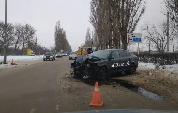 В Курчатове Курской области «Шкода» врезалась в столб