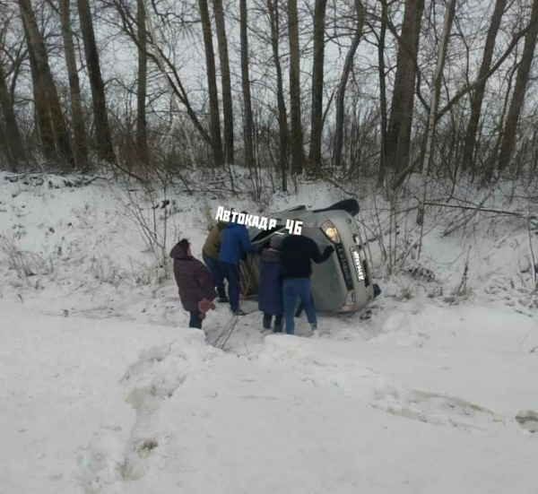 По предварительной информации очевидцев, выложивших фото с места в паблике «Автокадр_46», из-за гололеда возле города Щигры, не доезжая до Семеновки, водитель автомобиля не справился с управлением. Машина вылетела с проезжей части в кювет и перевернулась.