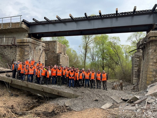 Железнодорожники восстановили движение через мост на участке Суджа — Сосновый Бор в Курской области. Они расчистили место повреждения инфраструктуры, восстановили опоры моста, установили новое пролетное строение, уложили железнодорожное полотно.