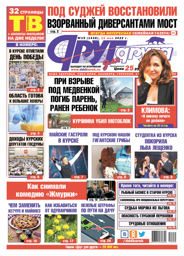 Во вторник, 10 мая, вышел свежий номер всегда интересной семейной газеты «Друг для друга» — одного из самых популярных и читаемых печатных изданий Курской области. Из него вы можете узнать следующее.