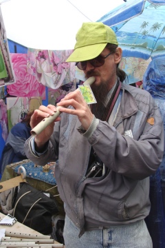 Традиционно работал «Город мастеров». Мы увидели много знакомых лиц – тех, о ком уже писала «ДДД». Были и новые участники. Например, курянин Александр Чуйченко. Прежде трудившийся в ремонтной бригаде на трамвайных путях, он сменил профиль и занялся изготовлением музыкальных инструментов. «Мечтал научиться играть на какой-нибудь этнической флейте, – говорит мужчина. – Найти такую оказалось трудно. Попробовал собрать сам. А когда получилось, стал детальнее изучать процесс – научился делать и играть на болгарской, турецкой, индийской и перуанской флейтах».