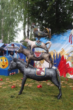 По ярмарке перемещалась телега со свистульками и журавликами – давний друг Коренской дед Михаил приехал из Орловской области и на этот раз. 73-летний дедушка-крестьянин надел узорчатую рубаху. Только лапти оказались не по погоде, а соломенную шляпу сменила папаха.