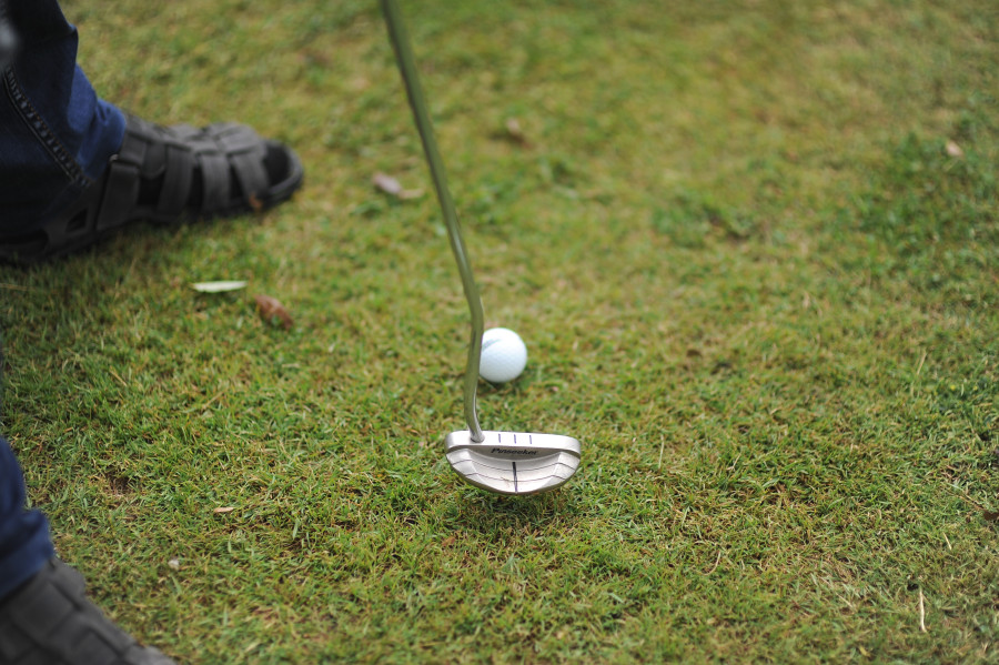 Пигорев приносит шесть клюшек и ведро с мячами. «Стандартный набор – это 14 клюшек, но нам для знакомства хватит пока и шести, – поясняет Владимир Федорович. – Каждая для определенного удара. Вот патер – видите, у головки плоская поверхность, мяч удобно закатывать в лунку. Айроны обеспечивают полет мяча на разные расстояния, и так далее».