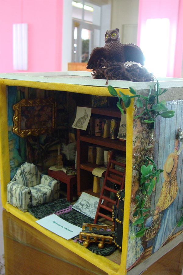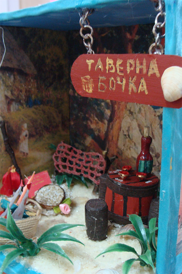 По сказке английской писательницы Беатрис Поттер «Ухти-Тухти» и повести ее соотечественника Брайана Джейкса «Рэдволл» курянин создал серию «лесных» румбоксов. Это одна из наиболее сложных в изготовлении работ: на дереве висит несколько шаров, в каждом отдельная комната – добиться шарообразной формы удалось, обмотав воздушный шарик бечевкой, смоченной в клее.