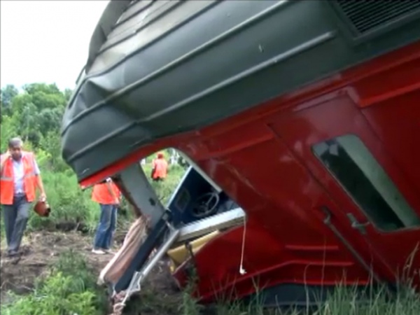 Во время столкновения один из вагонов электрички сошел с рельсовВ электропоезде ехали более полусотни пассажиров. По уточненным данным, полученным в управлении ГИБДД, пострадали двенадцать человек: водитель грузовика, машинист и помощник машиниста электропоезда, а также девять пассажиров электрички. Все они получили травмы различной степени тяжести. При этом восьмерых пострадавших сразу же отправили в Пристенскую центральную районную больницу. Одна женщина была госпитализирована в тяжелом состоянии.