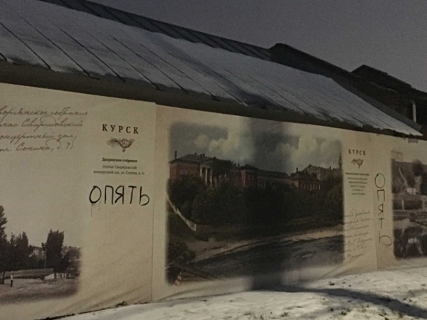 Куряне, часто бывающие на Боевке, привыкли к баннерам на кирпичной стене. Виды старого Курска вписались в пейзаж, однако не всем оказались по душе. Неизвестный добавил на них штрихи от себя, практически на каждой картине крупно написав черной краской слово «опять». Некоторые утверждают, что баннеры испортили до Нового года. Возможно, злоумышленники попали в объективы камер видеонаблюдения, которых на Боевке довольно много.