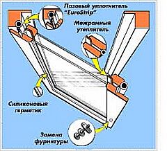 Прежние виды профиля устарели, на них сейчас не найти нужные запчасти, нечем заменить поломанную фурнитуру. Продавцы окон ПВХ, да и деревянных «евроокон» не рассказывают, что стеклопакеты со временем разгерметизируются и через 15–20 лет потребуется их замена, даже разбитый стеклопакет обходится гораздо дороже замены простого стекла. Никто не спорит, что новые окна красивее и престижнее старых. Однако, если перед вами стоит вопрос: «Что же делать с этими незакрывающимися и продуваемыми сквозняками окнами?», то мы советуем: не спешите! ваши окна можно исправить без замены. Достаточно их уплотнить – и свойства старых окон не уступят новым!