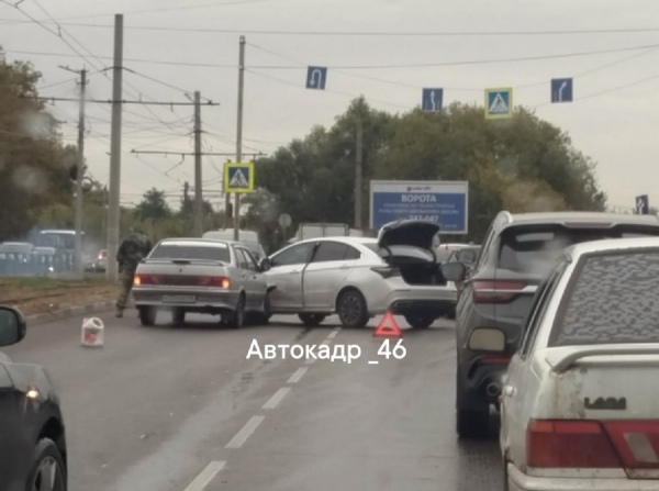 Как сообщают подписчики телеграм-канала «Автокадр_46», на проезжей части по направлению к центру города столкнулись два автомобиля. На месте было затруднено движение, собиралась пробка.