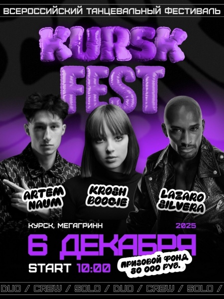 6 декабря в Курске состоится танцевальный фестиваль «KURSK FEST». Мероприятие пройдет в комплексе «МегаГринн» по адресу улица Карла Маркса, 68.