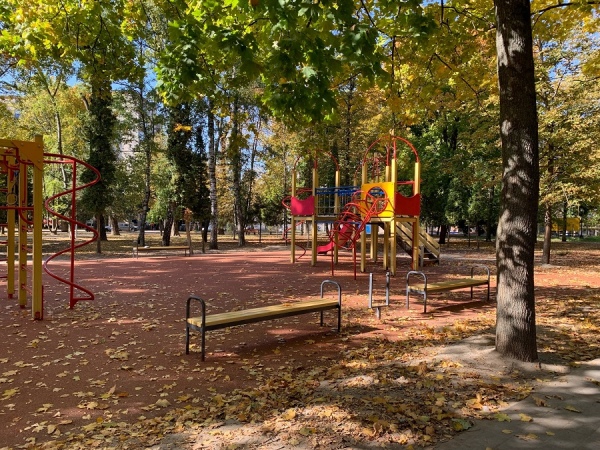 В парке Героев Гражданской войны, который куряне по привычке называют парком Бородино, на прошлой неделе завершили монтаж резинового покрытия на установленных в прошлом году детских площадках.