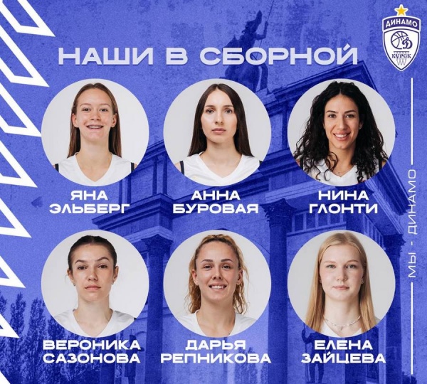 На сборы отправятся динамовки Анна Буровая, Нина Глонти, Елена Зайцева, Дарья Репникова, Вероника Сазонова и Яна Эльберг.