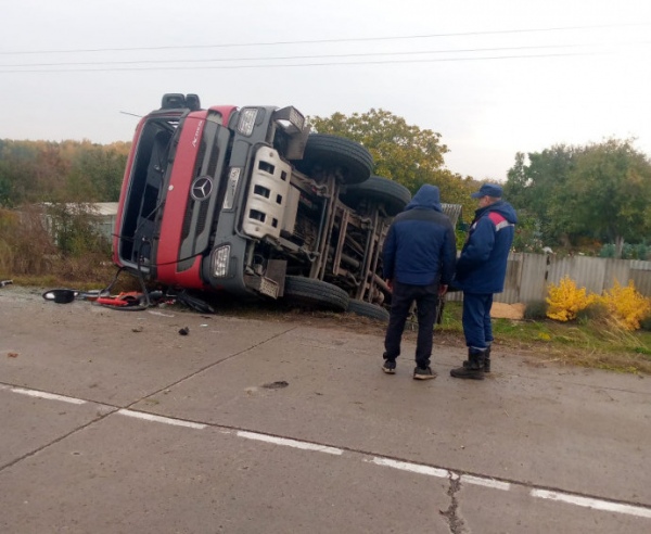 По прибытии оперативных служб установлено, что водитель грузовика «Мерседес Актрос» не справился с управлением, автомобиль съехал в кювет с последующим опрокидыванием. Водитель перевернувшейся на бок машины с травмами доставлен в больницу.
