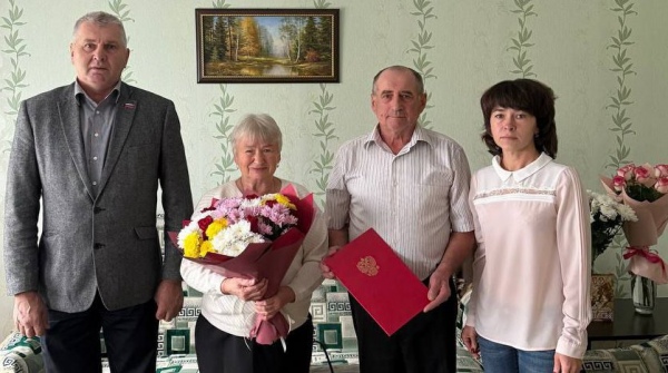 С золотой свадьбой Николая Петровича и Аллу Александровну поздравили районный глава Николай Волобуев и руководитель Песчанского сельского совета Татьяна Сотникова.
