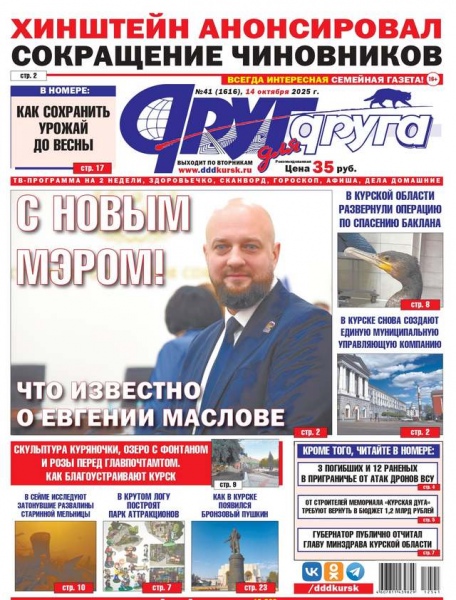 Во вторник, 14 октября, вышел в свет свежий номер всегда интересной семейной газеты «Друг для друга» — одного из самых популярных и читаемых печатных изданий Курской области. Из него вы можете узнать следующее.