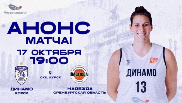 В СКК на улице Энгельса вечером 17 октября проходит матч женской баскетбольной премьер-лиги. Курское «Динамо» принимает оренбургскую «Надежду».