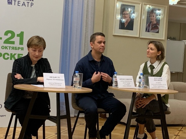Вчера перед началом спектакля состоялась пресс-конференция, в которой приняли участие директор Московского губернского театра Лариса Вильясте и актеры Анон Соколов и Наталья Шклярук. Они рассказали о постановках и ответили на вопросы журналистов.
