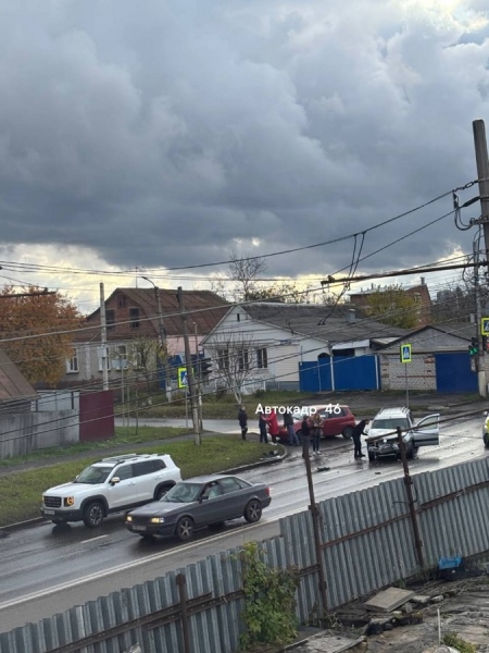 На улице Пучковке столкнули два автомобиля. На снимке в группе "Автокадр_46" видна скорая помощь.