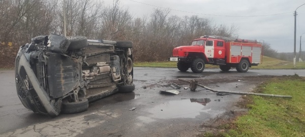 В Курской области сбила столб и перевернулась иномарка