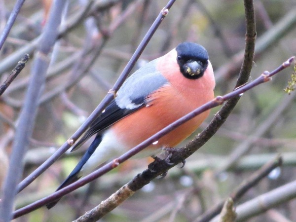 Первых снегирей этого сезона удалось запечатлеть Ларисе Басовой в Железногорском районе. Она рассказала, что сначала их услышала, а вот разглядеть никак не получалось. «Потом они немного поближе подлетели, и вот, пожалуйста, любуйтесь!», — рассказала курянка и поделилась фото красногрудого красавца.