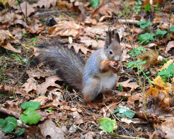 Упитанные зверьки настолько были увлечены своей игрой, что не обращали внимания на прохожих. Местные жители уже знают, что выходя на улицу, нужно прихватить какое-нибудь лакомство для пушистых соседей. И судя по упитанности белок на видео, кормят их хорошо.