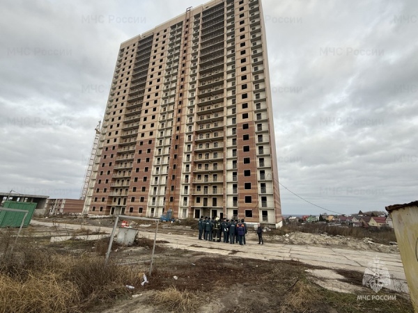 На строящемся многоэтажном доме (этот жилой дом станет самым высоким в Курске) прошли экспериментальные пожарные учения. Спасатели тренировались тужить пожар на кровле 24 этажа.