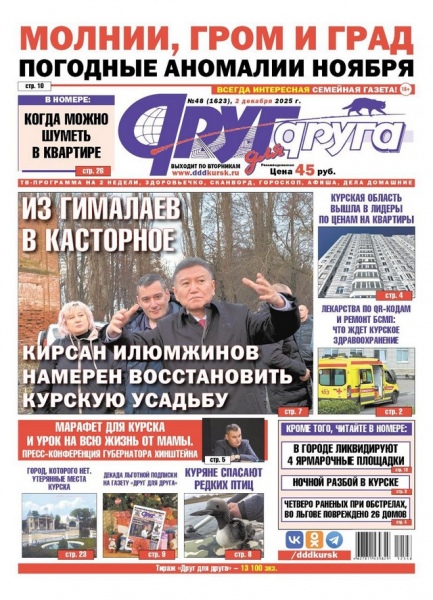 Во вторник, 2 декабря, вышел в свет свежий номер всегда интересной семейной газеты «Друг для друга» — одного из самых популярных и читаемых печатных изданий Курской области. Из него вы можете узнать следующее.