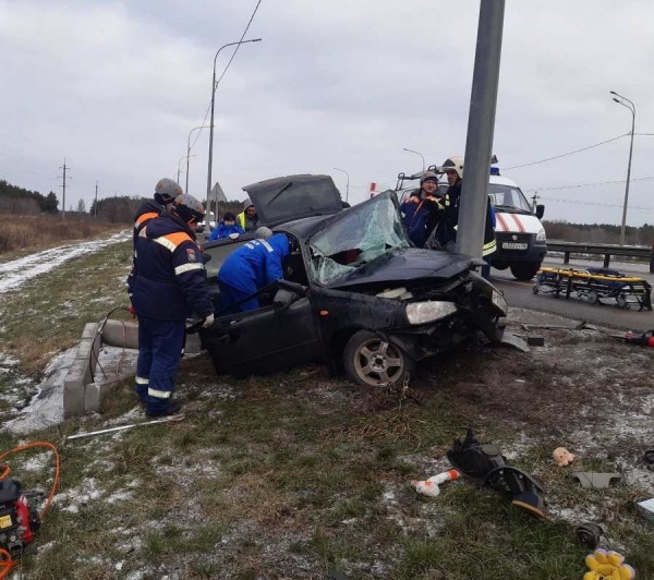 На место ДТП по тревоге выехали оперативные службы. Спасатели оказали помощь в ликвидации последствий ДТП. Машина врезалась в столб.