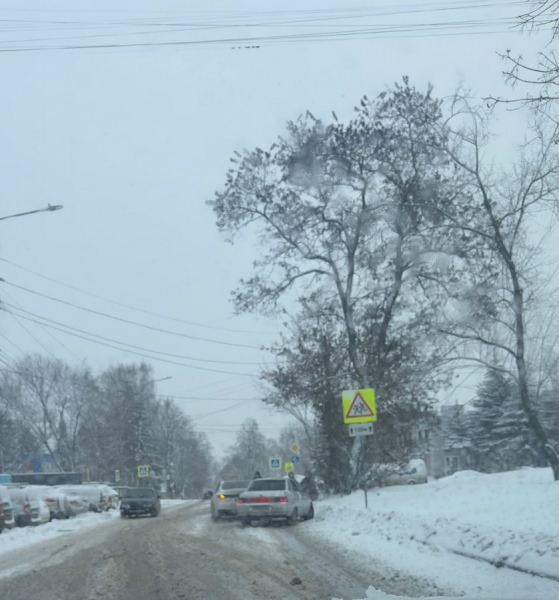 Дорожно-транспортное происшествие произошло сегодня на улице Большевиков в Курске. На заснеженной дороге столкнулись два автомобиля.