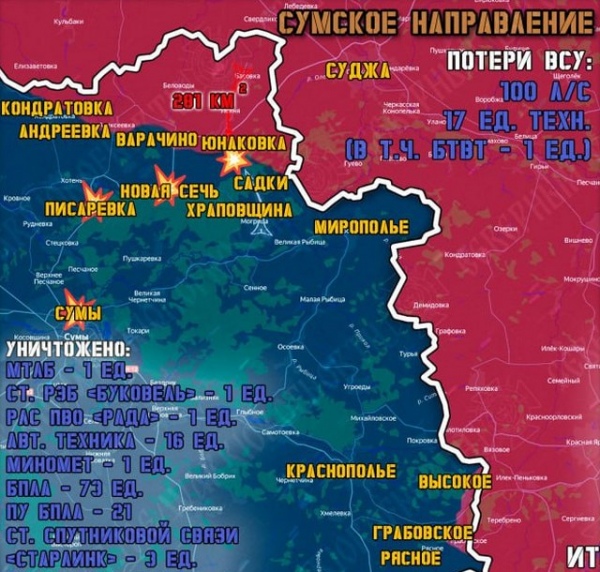Общая площадь территории Сумской области, освобожденной от ВСУ, по данным наших военных, за несколько дней увеличилась с 271 до 281 кв. километра.