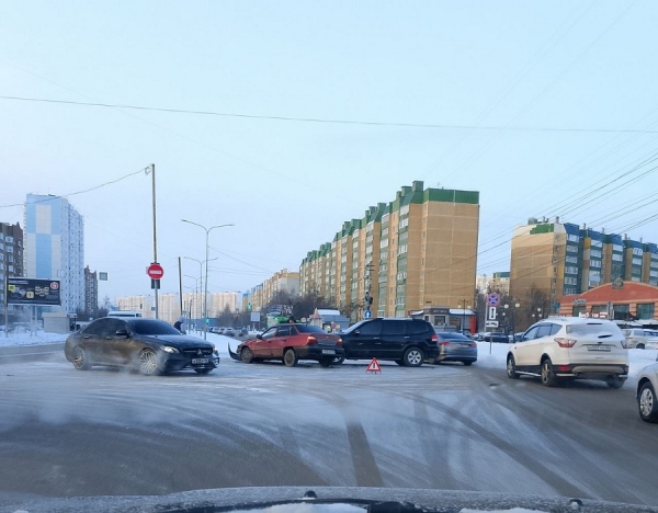 На проспекте Клыкова, на развороте перед ТЦ "Компас", столкнулись два автомобиля.