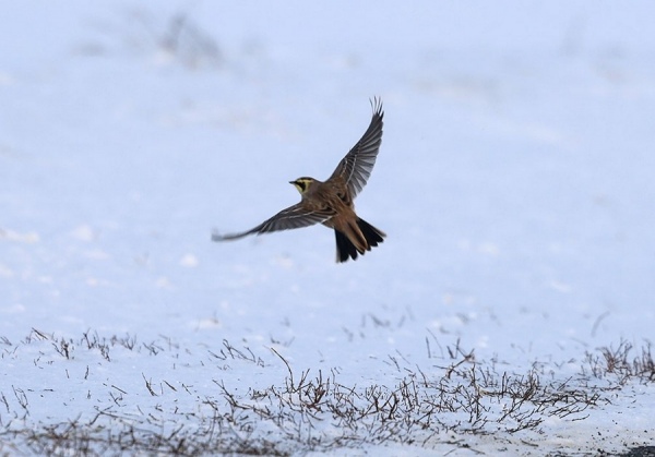 «Есть птицы, которые, чтобы пережить невероятно суровые условия, возникающие на их далекой северной родине, прилетают зимовать к нам. Наиболее известные из них — рогатые жаворонки и пуночки. Оба вида гнездятся в далеких северных широтах: арктической тундре России, Скандинавии, Исландии, Гренландии и Северной Америке», — рассказывают в заповеднике.