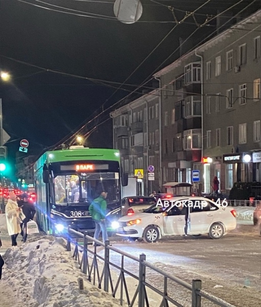 Очередное ДТП с участием общественного транспорта зафиксировано в центральной части Курска вечером 9 февраля.