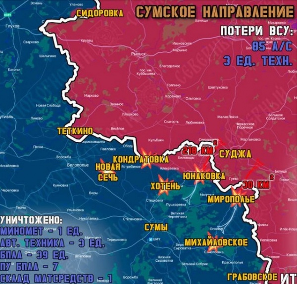 Активизированы информационные операции ВСУ, чтобы убедить население Украины в каких-то успехах на фронте в Сумской области. Это фальшивая установка флагов и заявления о том, что российская армия пытается пройти на позиции ВСУ через какие-то трубы. «Эта информация не соответствует действительности», — заявляют Северяне.