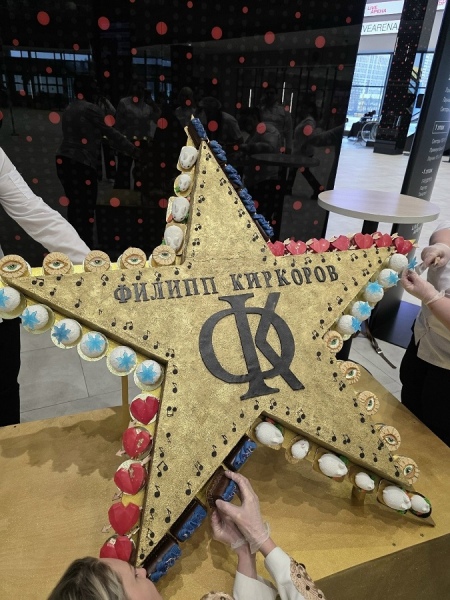 Команда из 25 кондитеров, в которую вошла курянка, за три дня приготовила торт в виде звезды с логотипом «ФК» и 150 десертов пяти видов, вдохновившись хитами «Зайка моя», «Настроение цвета синий», «Снег», «Я за тебя умру», «Просто подари мне один только взгляд».
